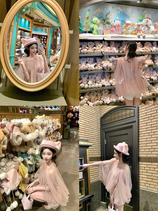 Hotdog is spicy! [Qingyue Xiaozhan] French-style hollowed-out mesh long-sleeved women's spring and autumn cover-up.