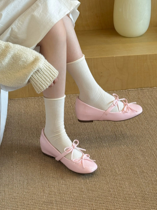 61oniiii" Special Peach Pink Mary Jane Shoes with 4.5cm Hidden Wedge Heel and French Bow Strap