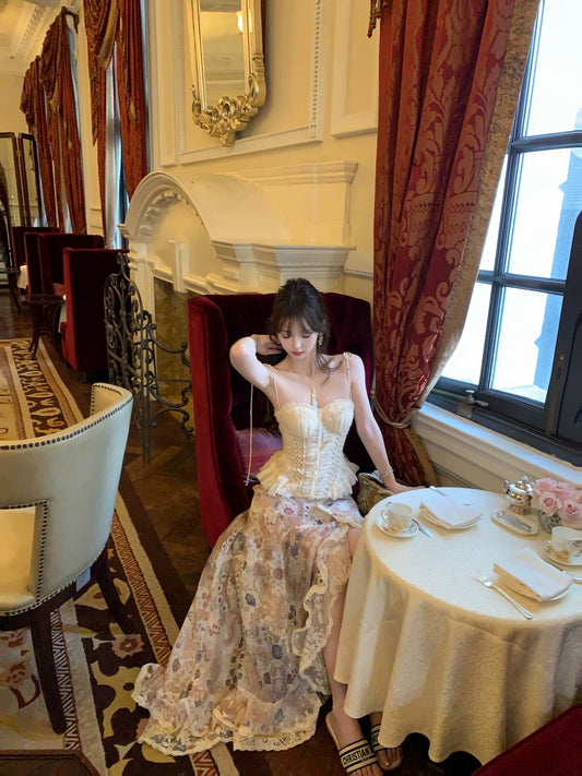 Popular online style, 2026 Spring New Gentle Style Lace Skirt with Bow Tie, A-line Skirt, Long Skirt, Women's Skirt