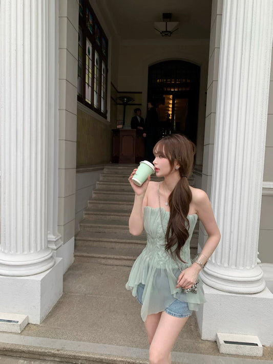 Leathercat Off-Shoulder Shirt, Summer 2026 Collection: Exquisite French Chiffon with Unique Pleats, New Style.