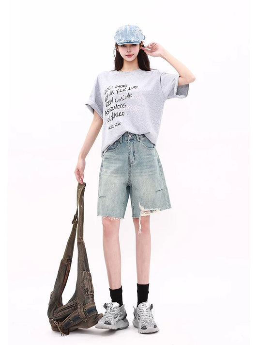 In stock 【Bubu A】12.8#91125 - Retro Spray-painted Glitter Curved Blade Fleece Jeans - No returns or exchanges