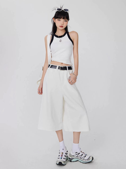 Shenzhen Nanyou High-End Women's Clothing 2026 Spring/Summer French Collar Denim Vest Top + Skirt Set