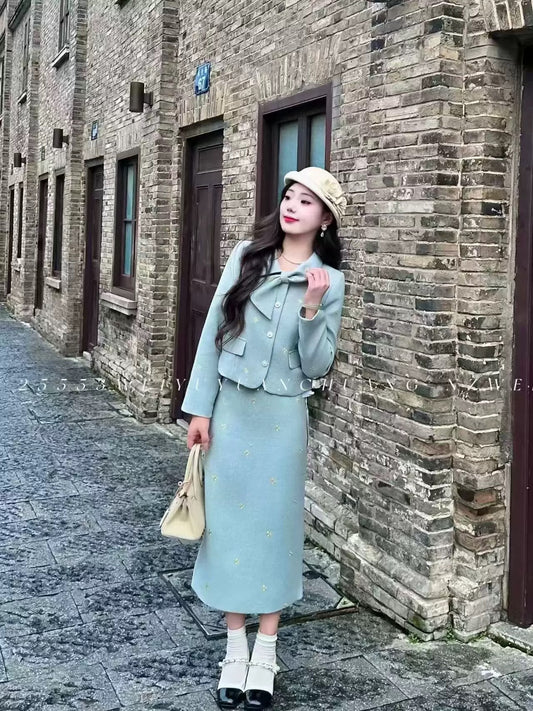 [Da Qiao Family] Custom Embroidered High-End Wool Suit Dress #3722