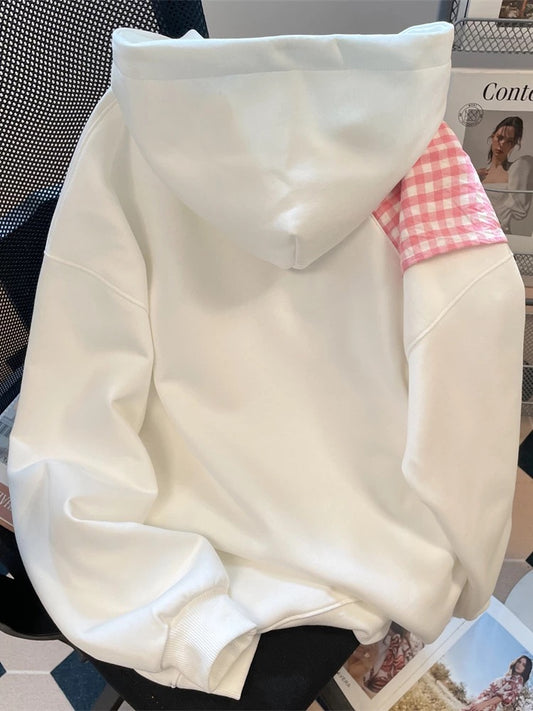 This 2025 trendy hooded sweatshirt with a bow and plaid shawl is super cute and unique, a new autumn style top for women.