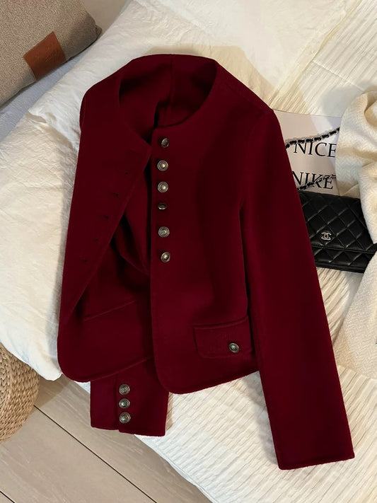 French retro red Chanel style jacket for women spring and autumn single-breasted senior casual loose long-sleeved cropped top