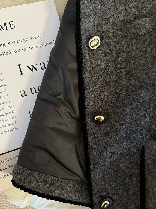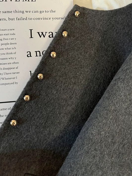 80% Double-faced Wool Short Jacket for Women, Chanel Style, Autumn/Winter 2025, High-End Dark Gray, Skin-Friendly Soft Cashmere