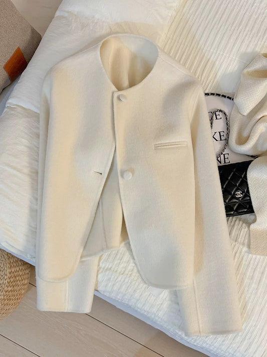 2025 Autumn/Winter New Off-White Lazy Gentle 70% Wool Double-Faced Short Coat for Petite Women