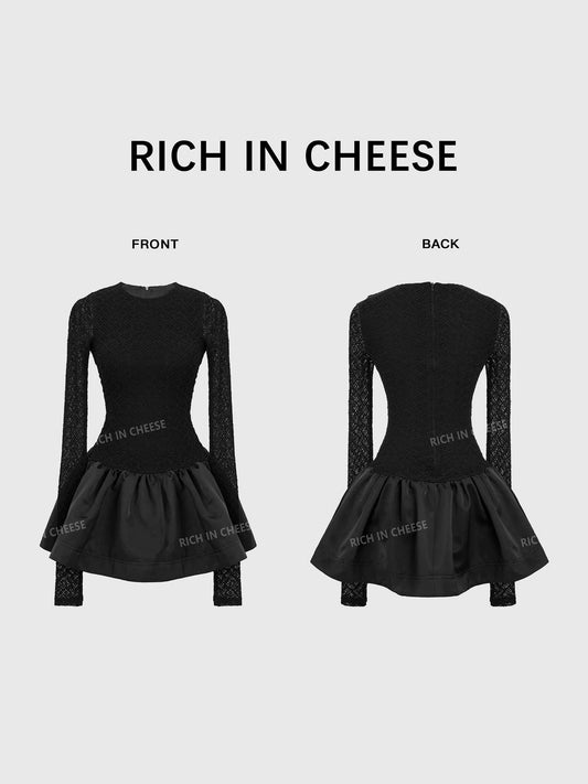 Shu Hulei Romantic Theater - Off-the-shoulder mesh-paneled long-sleeved knit dress, elegant and slim-fitting long dress for women.
