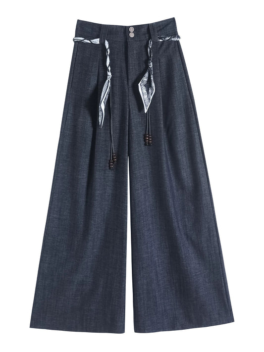 Scarf tie denim suit pants women's spring and autumn 2025 new small high waist drape casual loose wide leg pants