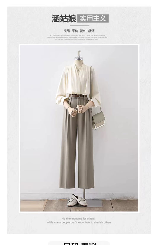 High waist straight suit pants women's spring and autumn new black wide leg pants trousers OL style professional versatile slim pants