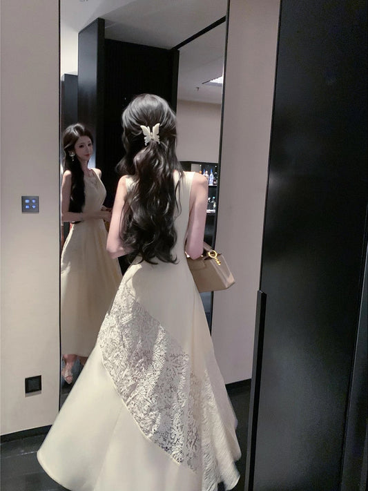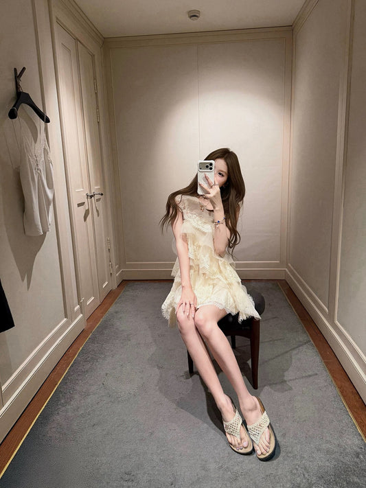 Sun Yaqiao [Bulgaria] Summer Niche Designer Asymmetrical Lace Sleeveless Dress