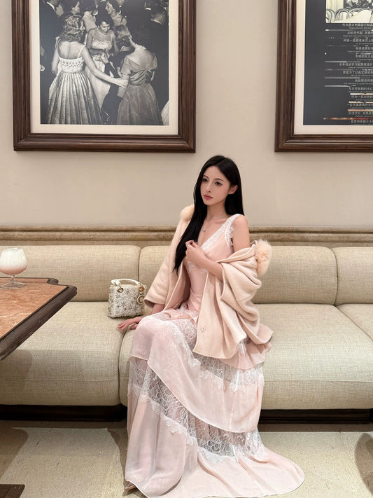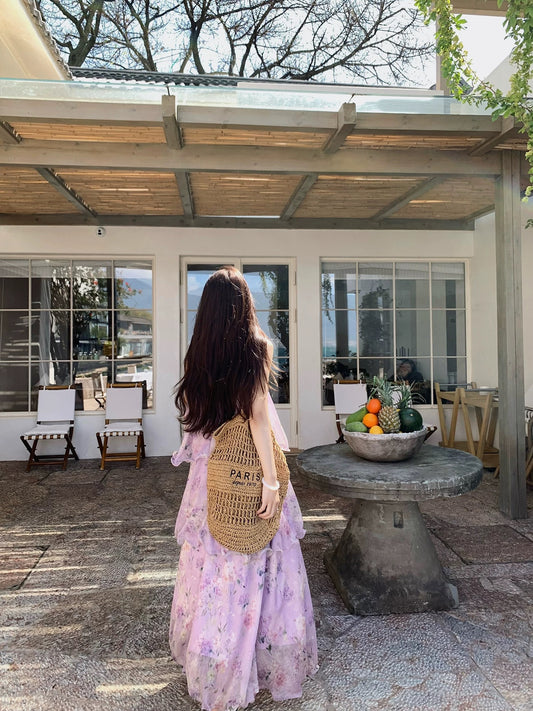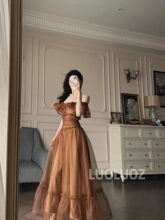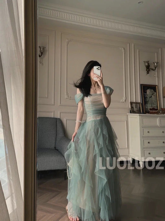 LUOLUOZ【Soft Mist Dreamy】French High-End Gentle Off-Shoulder Fairy Vacation Long Dress
