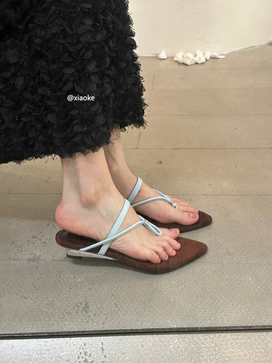 Fairy-like crisscross strap thong sandals for women, perfect for summer, comfortable, and gorgeous Roman sandals with a small wedge heel.
