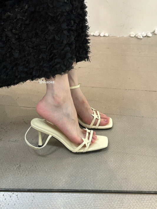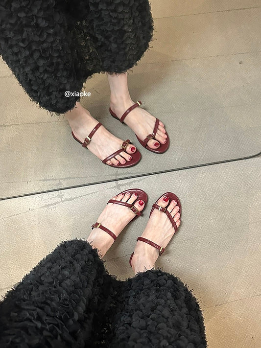 Fairy-like flat open-toe sandals, new summer 2025 style, gentle and elegant, perfect for pairing with skirts, one-strap sandals.