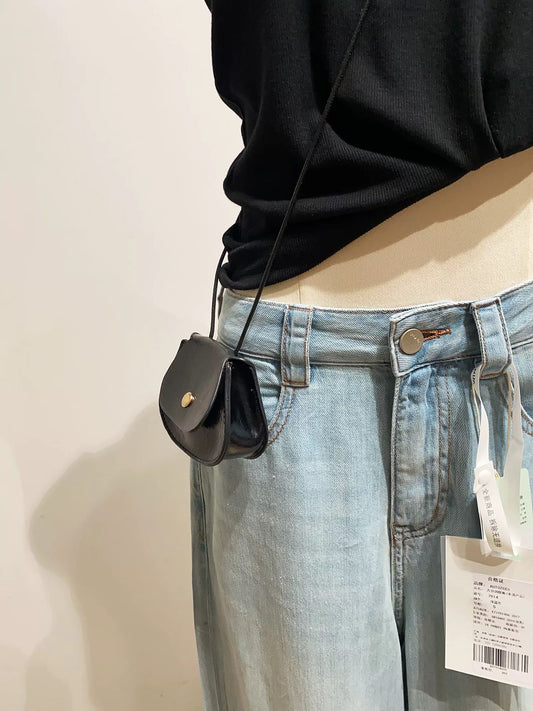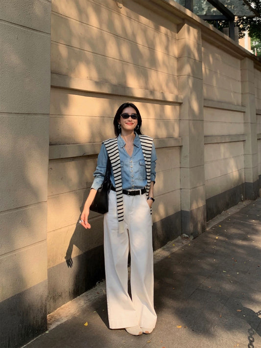 Retro high-waisted wide-leg jeans for women, spring and autumn, petite, straight leg trousers.