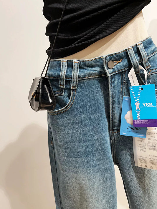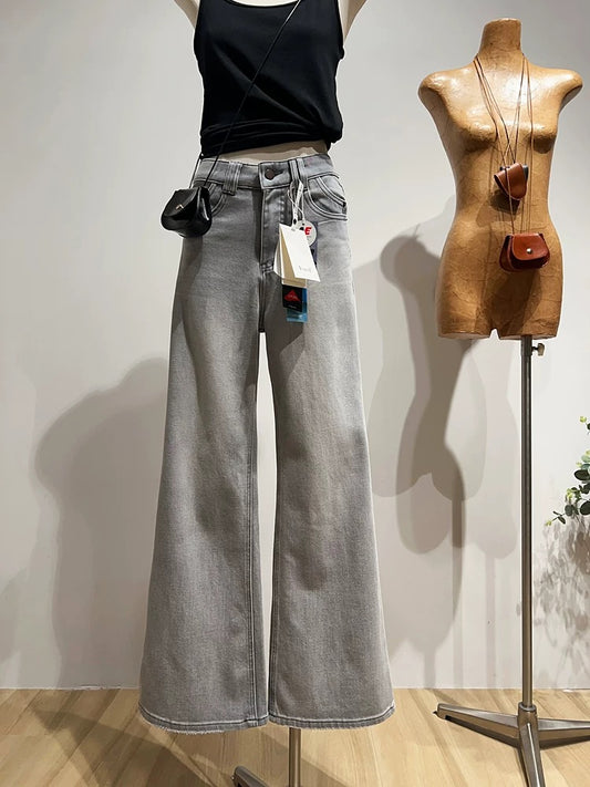 New Spring/Autumn Wide-Leg Jeans for Women, Korean Style, Loose Fit, Casual, Stretch Straight Leg Pants