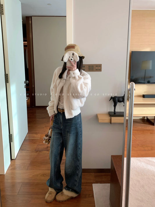 Vendor:mymystyle94Regular price $24.00 USDRegular priceUnit price / perSale price $24.00 USDSUXINLAN Korean Style Retro Thickened Versatile Slimming High-Waisted Flared Jeans for Women, Winter Style