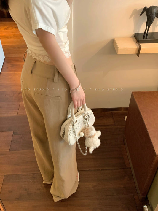 e go studio Tencel linen cotton low-rise handmade diagonal pleated casual trousers minimalist high-end straight leg trousers