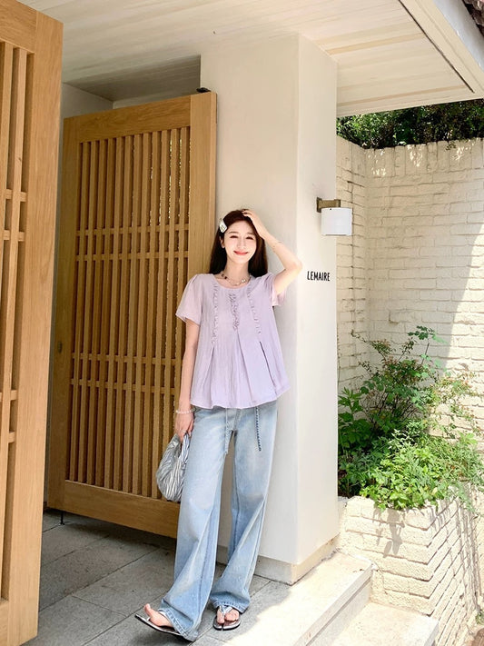 YangYangYOYU's Lightweight Summer Short-Sleeve Shirt for Women: Thin, Gentle, Sweet, and Chic Babydoll Style