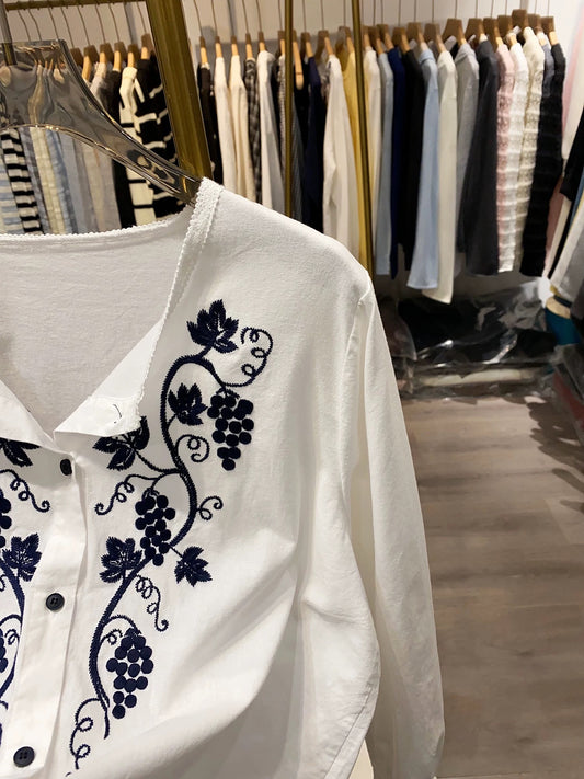 [Xiao Ai's Shop Real Shot] Fashionable Grape Embroidery Patchwork Blouse for Women, 2026 Versatile Autumn Style Loose Top