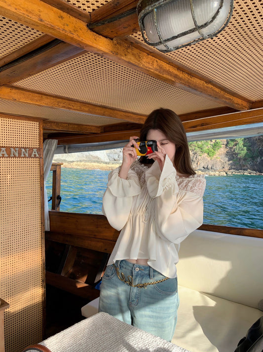 [In Stock] CHICYOU "Chl*e Lace Secrets" Adjustable Drawstring Collar Long-Sleeve Shirt Top