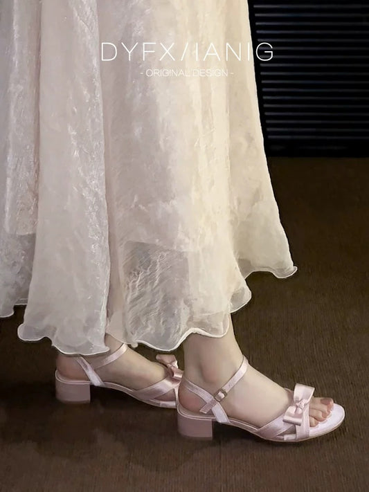 Women's Fairy-Style Sandals, 2025 New Style, Summer, Pair with Skirts, Chunky Heel, Elegant and Stylish, Versatile and Popular, Suitable for Wearing Outerwear