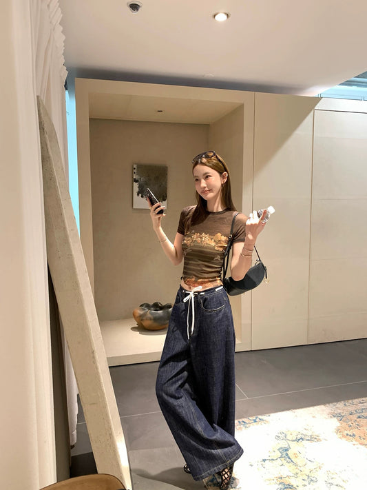 New Winter Arrival: 【SMX】iSMX57766-2 Features Wide-Leg Fit, Stylish Flocked Jeans