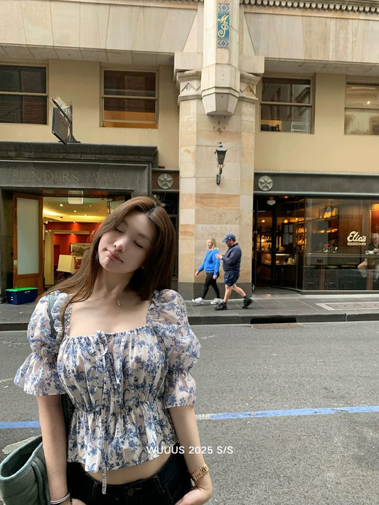 Women's export-style printed camisole top with cut labels, slim fit, sexy style, short retro look.