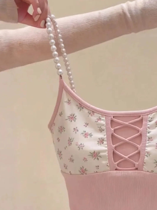 Foreign trade counter export label cut-out French floral camisole tank top pure and sexy style slim fit versatile inner layer hot girl top trendy