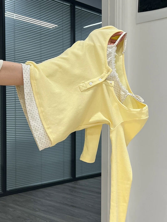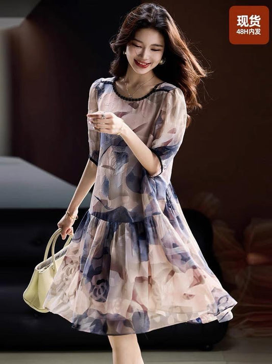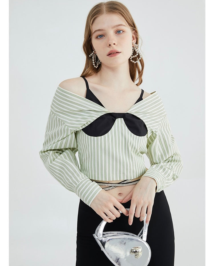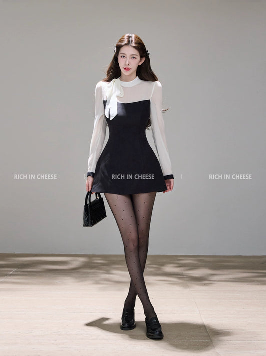 Shu Hulei's Annual Heiress Dress: Korean Style Elegant Heiress-Style Tie-Waist Color-Blocked Faux Two-Piece Dress