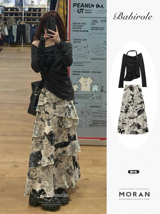 IYF Love Home 2025 Autumn New French Retro Design Suede Top and Bottom Skirt Set