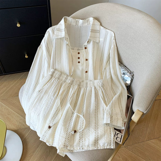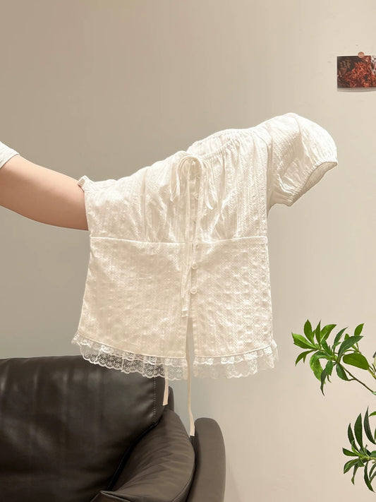 BonBon•Chill~Lazy and Elegant Girlish Two-Piece Lace Pajama Set for Summer.
