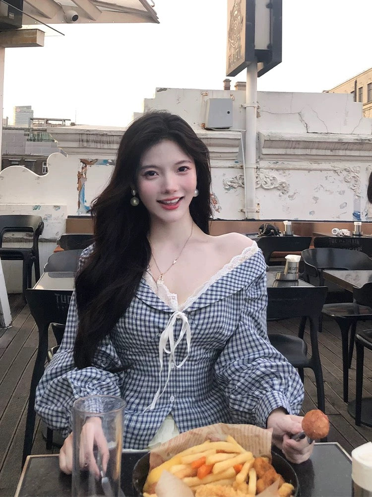 Export-grade, label-cut, autumn/winter French-style plaid vest/camisole/short top for women.