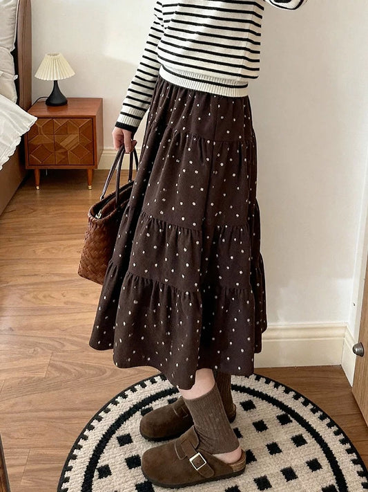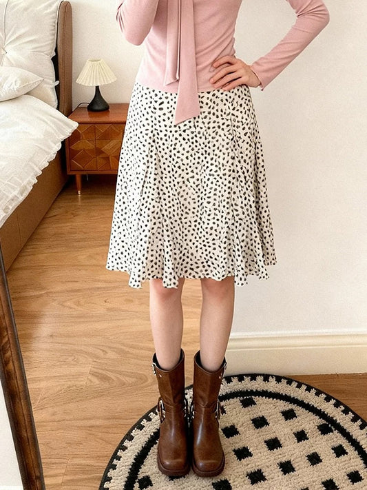 Y.JIA Winter Sweet Polka Dot Round Neck Loose Slimming Versatile Pullover Mid-Length Knit Sweater
