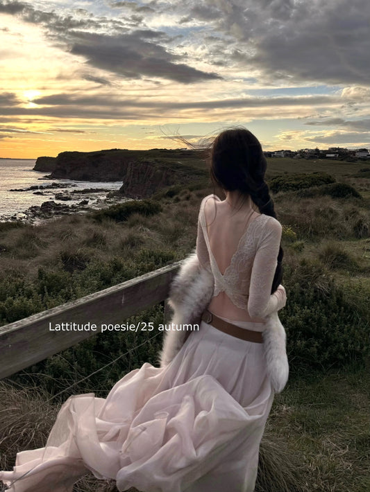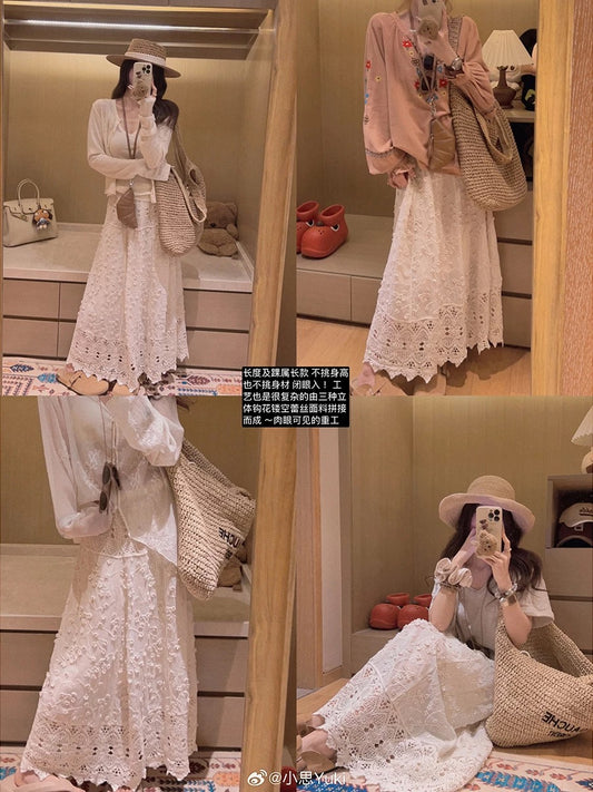 Popular online style, 2026 Spring New Gentle Style Lace Skirt with Bow Tie, A-line Skirt, Long Skirt, Women's Skirt