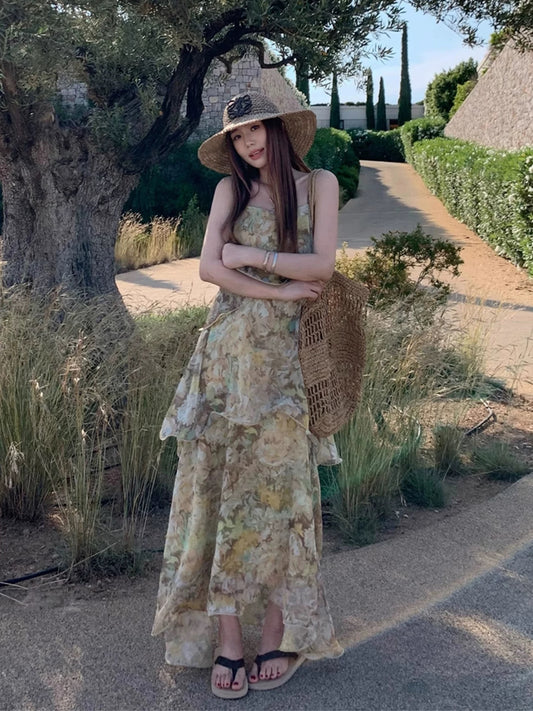 Angelababy/26SS French-style elegant and sophisticated floral print slimming slip dress for women