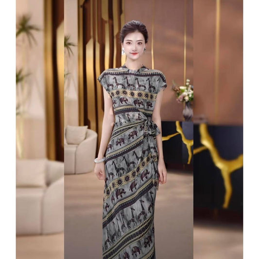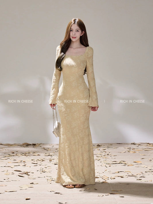 Shu Hulei's Candlelight Evening Dress: A sophisticated and elegant jacquard long dress with a cinched waist, perfect for a slimming and romantic winter occasion.