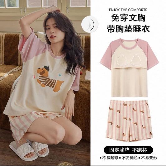Casual walking pants, cartoon dachshund pajama pants, women's summer plaid double pocket plus size loose drawstring lounge pants