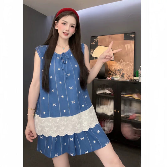 Regular price $43.20 USDRegular priceUnit price / perSale price $43.20 USDIN BLUE! A high-waisted, A-line, slit denim skirt with a sparkling, star-studded design that makes legs appear longer.