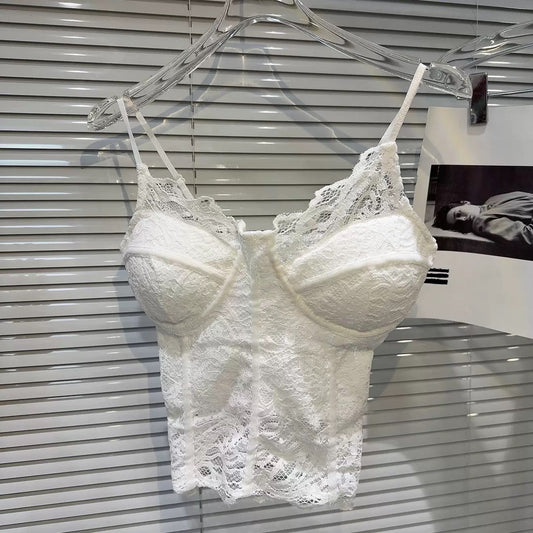 [In Stock] 2026 Spring New Sexy Elegant Lace Crochet Design Slim Fit Bra Pad Camisole