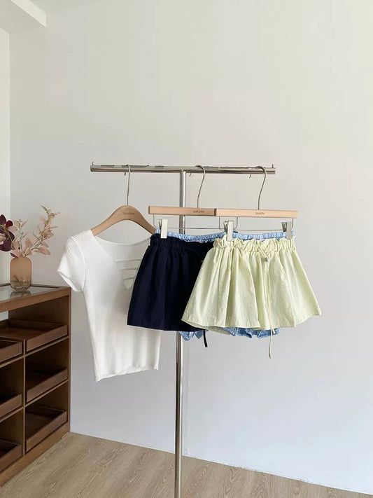 Korean-style, youthful, color-blocked, tiered cake skirt, new summer 2026 style, high-waisted, slimming A-line skirt for petite women.