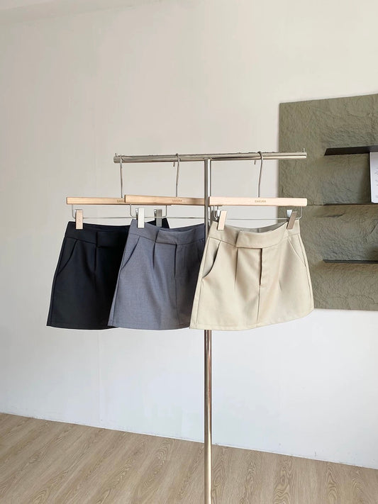 Women's grey woolen shorts, autumn/winter 2025 new style, high-waisted, slimming A-line hot pants, casual leggings.
