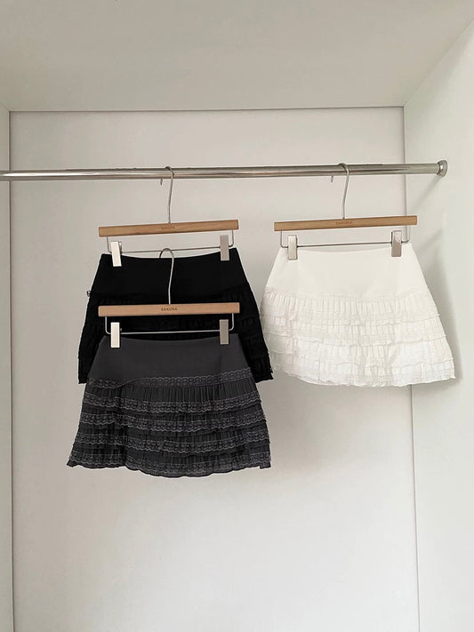 White lace-trimmed high-waisted midi skirt for women, new 2025 Korean style, versatile, anti-exposure A-line mini skirt.