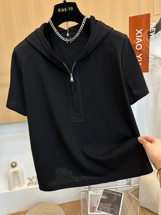 Artistic striped hooded sweatshirt with drawstring, perfect for early autumn, Korean style, with a soft, relaxed feel