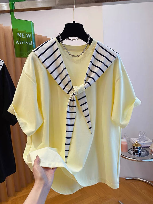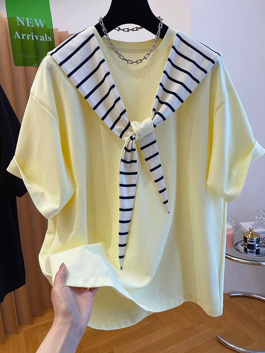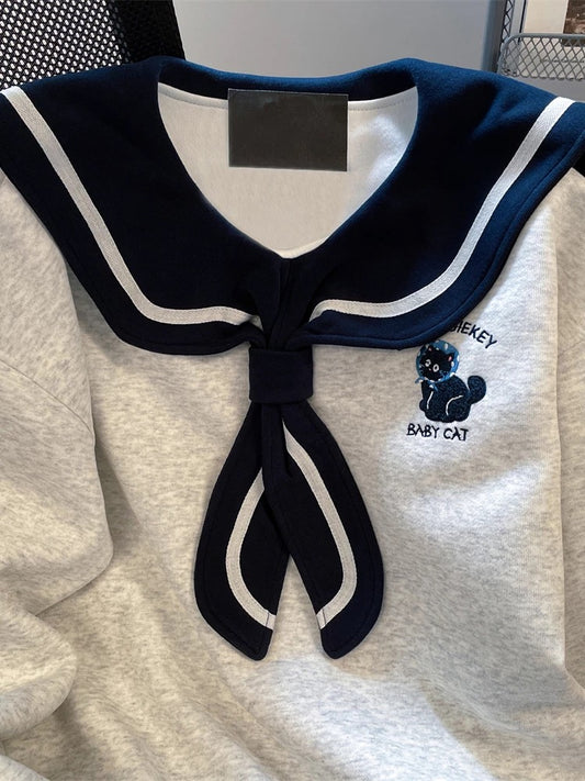 Korean-style, relaxed, cute embroidered cat sailor collar sweatshirt for women, spring and autumn, loose fit, stylish, youthful design.