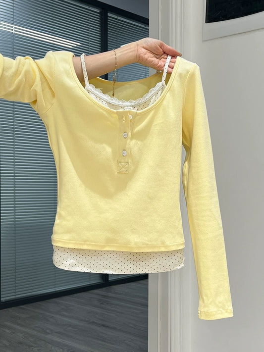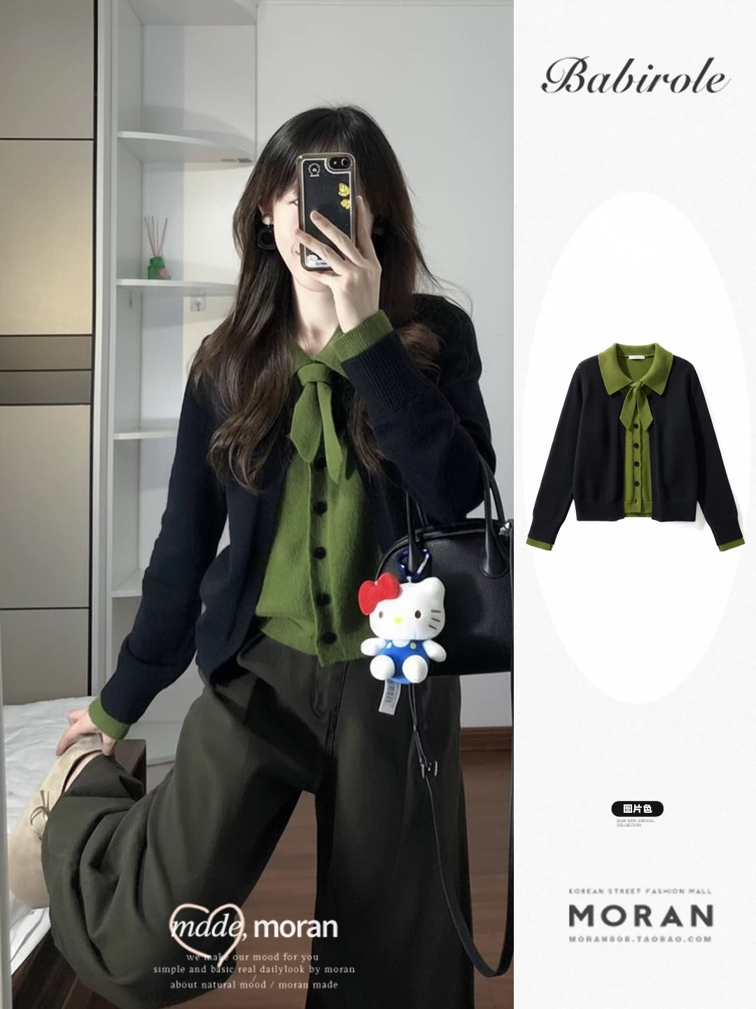 Chaochao Home Women's Knitted Sweater Autumn/Winter American Retro Slim Fit Lazy Slit Design Niche Inner Layer Top F