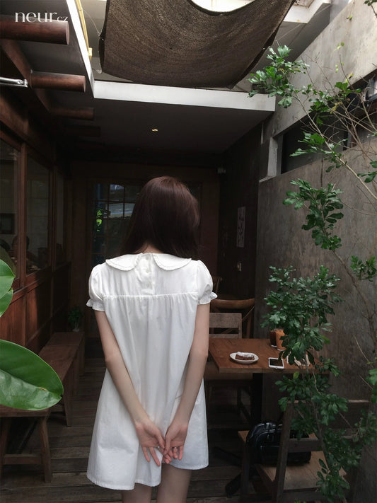 neurcz Short-sleeved Peter Pan Collar Straight Dress Women's Spring/Summer 92 Cotton Slimming Loose Puff Sleeve White Dress