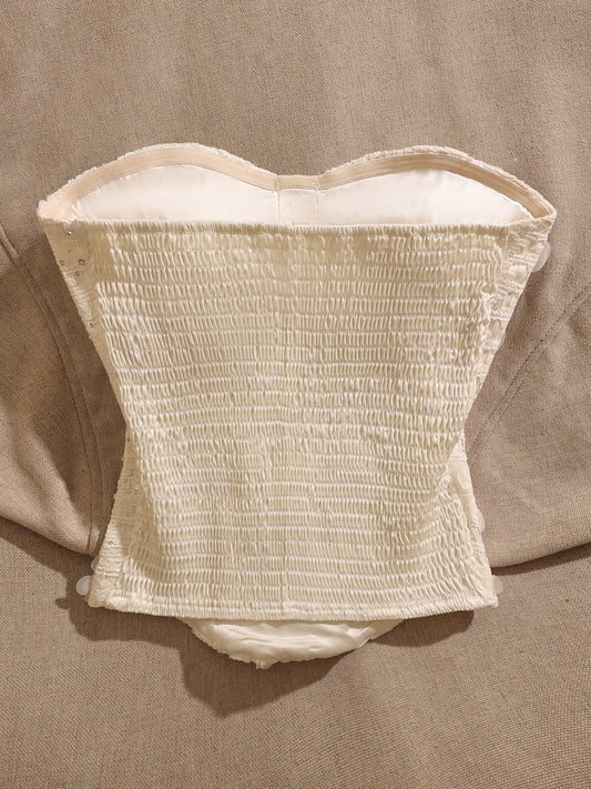 neurcz Beige lace-trimmed retro-style short dress, summer-appropriate, waist-cinching design, gentle and feminine white dress.