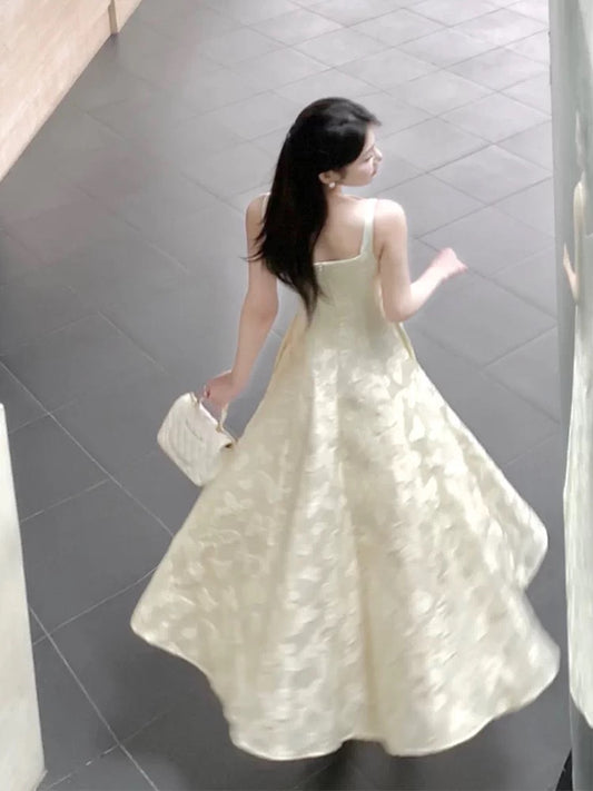 SRK French-style embroidered dress with flutter sleeves, V-neck, slimming, elegant, waist-cinching, a unique fairy-like white dress.