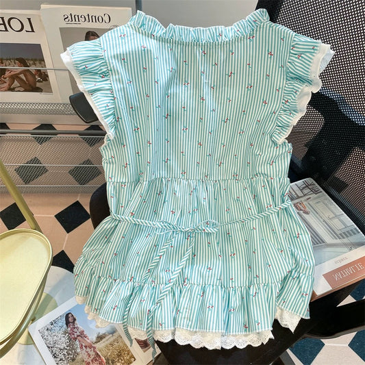 JMSHOP Playful Girls' High School Style Two-Piece Set: Original Color Vest Dress with Striped Shirt as Inner Layer